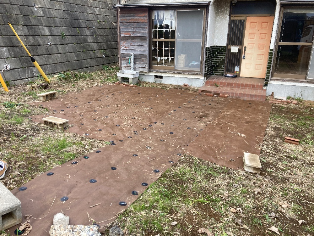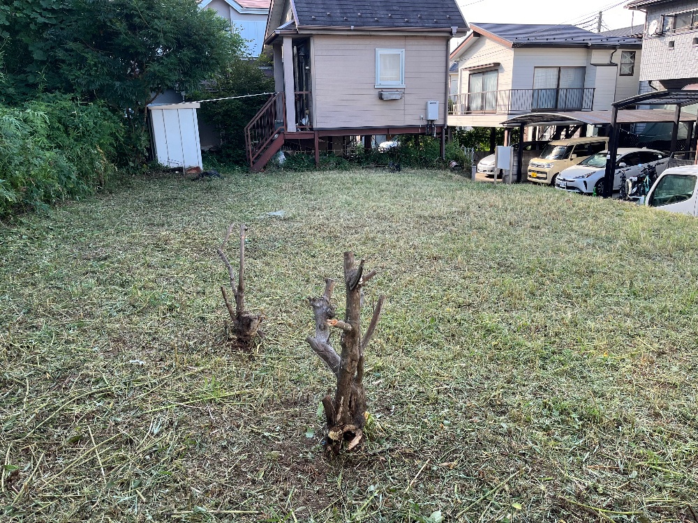 *敷地内の土が既存のブロック塀よりも高かった為、庭木を伐採後にブロックを1段並べて土の流失を予防しました。