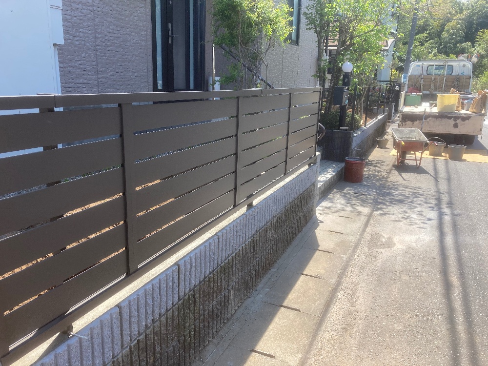○牛久市A邸は、ホームページからの問い合わせから、玄関のタイル補修に始まり、今回⬆️のブロック積みとフェンス設置。